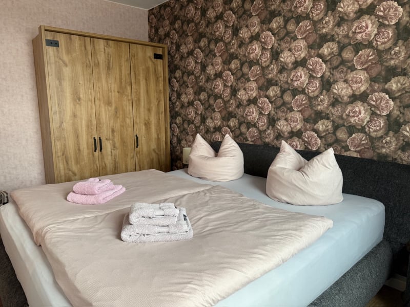 - 1 Schlafzimmer mit Doppelbett 180 x 200cm und Kleiderschrank mit Hafenblick