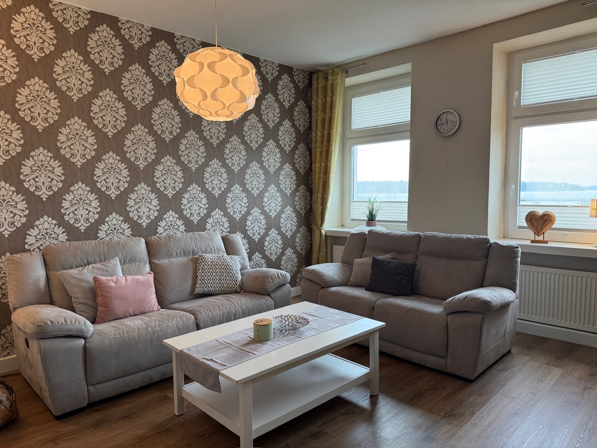 - Blick auf den Hafen vom Wohnzimmer sowie von einem der beiden Schlafzimmer