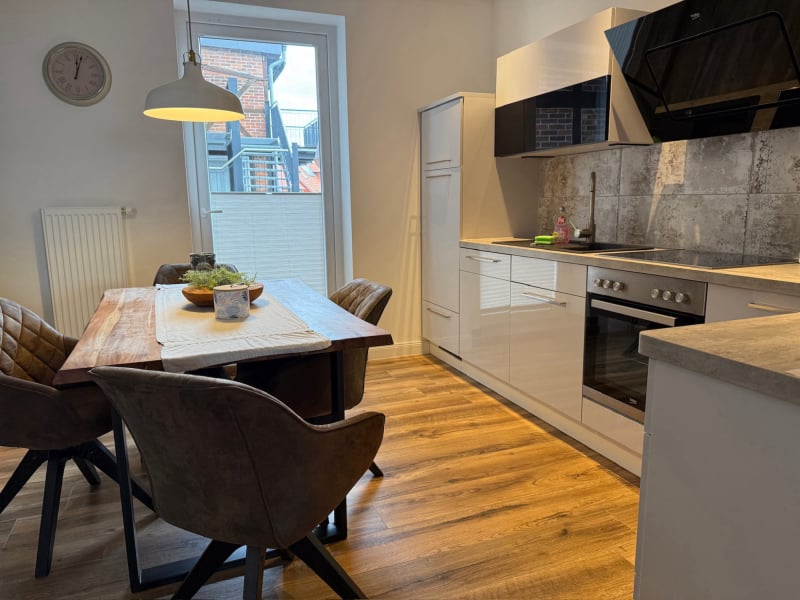 - voll ausgestattete Küche mit schönem Esstisch für 4 Personen Kühlschrank mit integriertem Kühlfach, Ceran-Kochfeld, Backofen, Geschirrspüler, Kaffeemaschine, Wasserkocher, Toaster